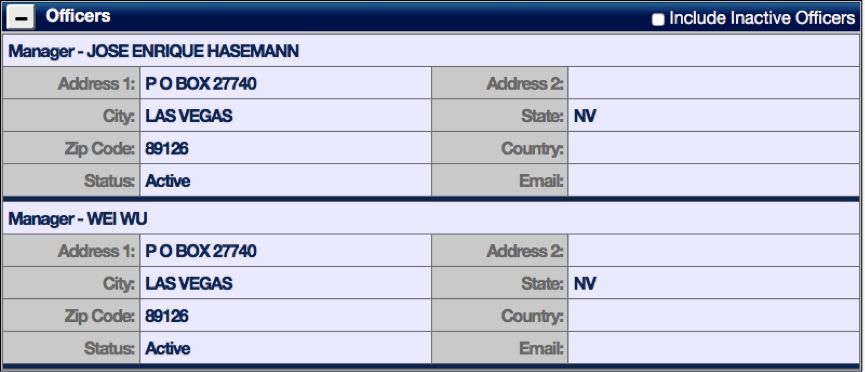 笔者通过whois查询mchain.cloud域名,结果显示,其归属于一家名为Wriva Properties的公司,公司注册地在美国,致力于住宅建设业务,运营近一年,年收入约为14万美元。内华达州政府网站显示,Wriva Properties登记在册的两名经理人为WEI WU与Jose Enrique Hasemann,疑似为Mchain白皮书中的团队成员WEI Wu、Jose Hasemann。